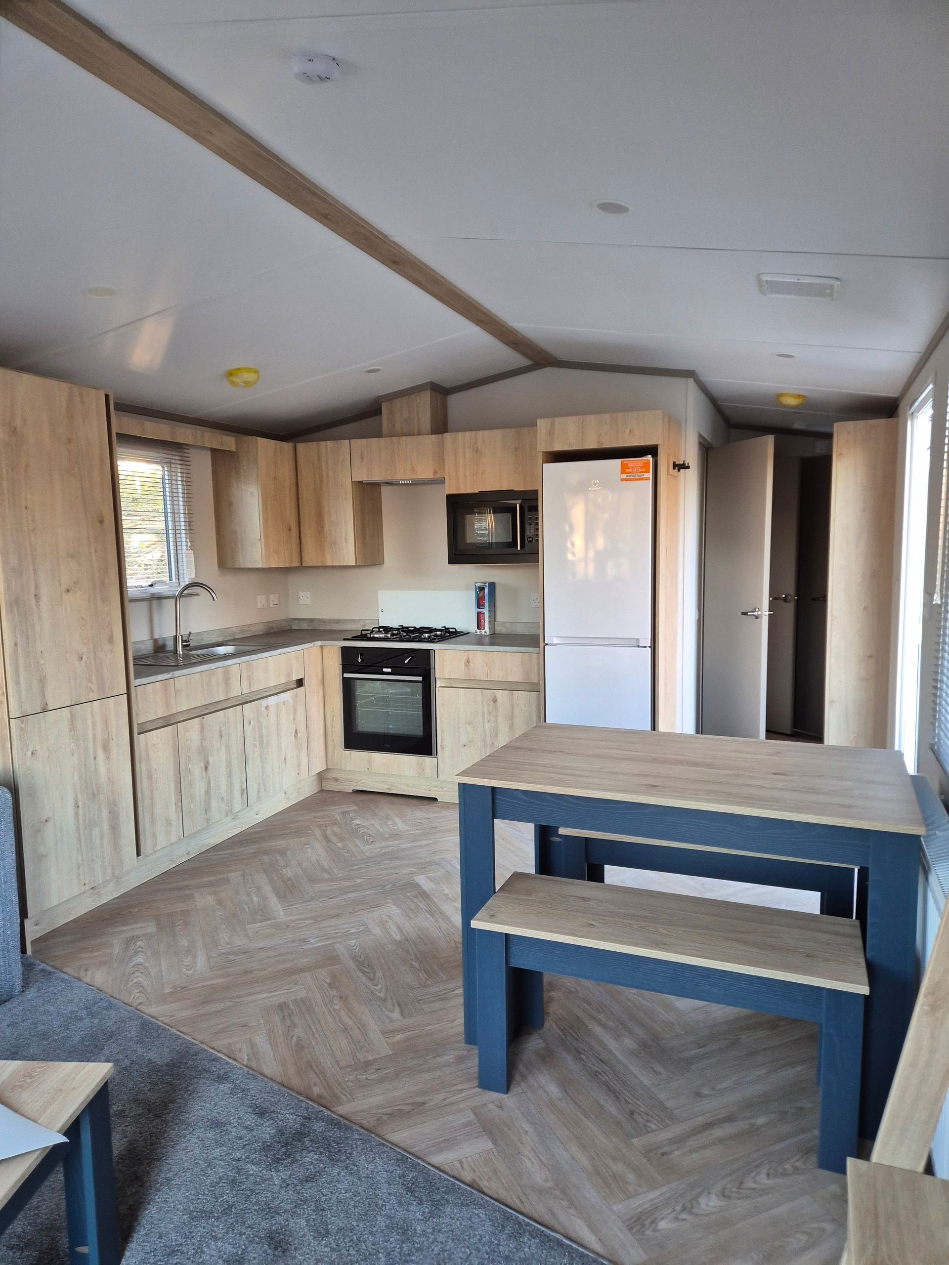 This is a quirky little hoilday home, ideal for the first time buyers interested in settling on our quiet country park. Open plan living/ kitchen, 2 bedrooms, it comes with the wrap around skirt and built in step.
